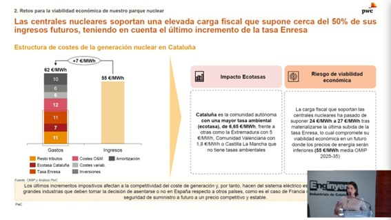 - «La energía nuclear puede contribuir a reducir emisiones, nos da fiabilidad que necesitamos para las energías renovables, nos aporta estabilidad y seguridad de suministro. El aumento de las tasas pone en peligro la continuidad de las centrales«.