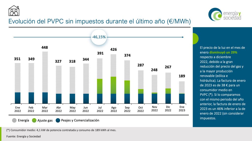 con el mismo periodo del año anterior, la factura de enero de 2023 es un 46% inferior a la de enero de 2022 (sin considerar impuestos).