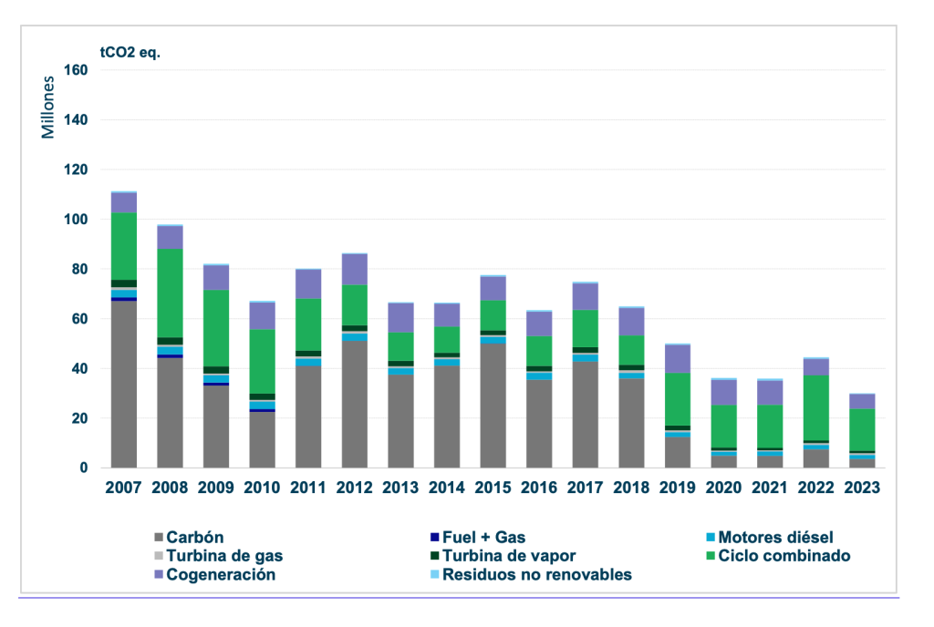 Figura 3-¿? Evolución de las emisiones de CO2 de la generación de energía eléctrica nacional. 2007-2023