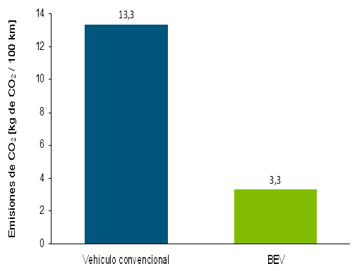 Figura 4-6. Emisiones de CO2 de un vehículo convencional vs. un vehículo eléctrico puro.