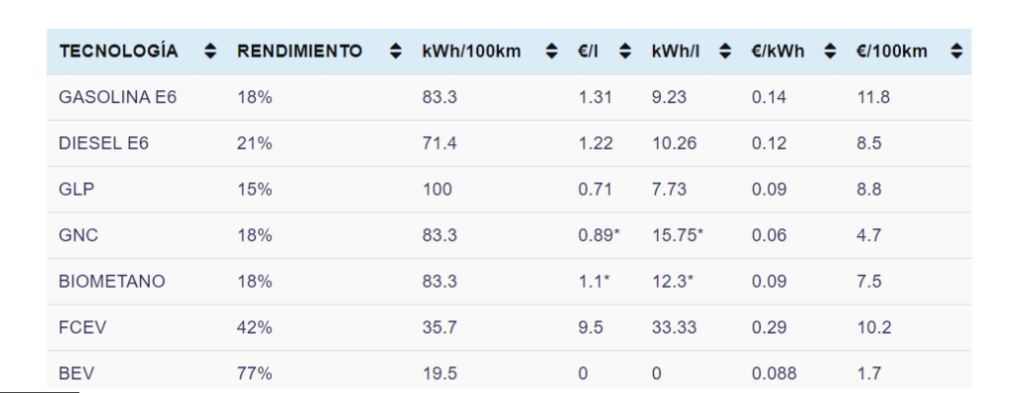 Atendiendo a los números de esta tabla, por cada 100.000 km recorridos se pueden alcanzar ahorros en combustible de entre 7.000 y 10.000 euros con respecto a las tecnologías disponibles más utilizadas.